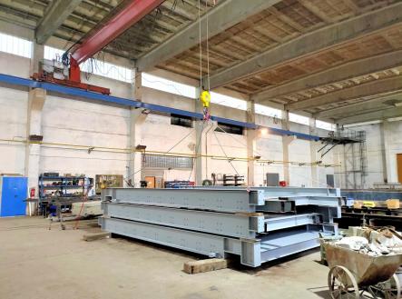 K dispozici prostory pro kanceláře, sociální zázemí – šatna, sprchy, WC. Velkou výhodou je portálový jeřáb, dílenské zdvihadlo a nákladní výtah, parkování přímo u haly. Dále poloha nemovitosti na okraji obce, kde výroba nenarušuje klid v obci.